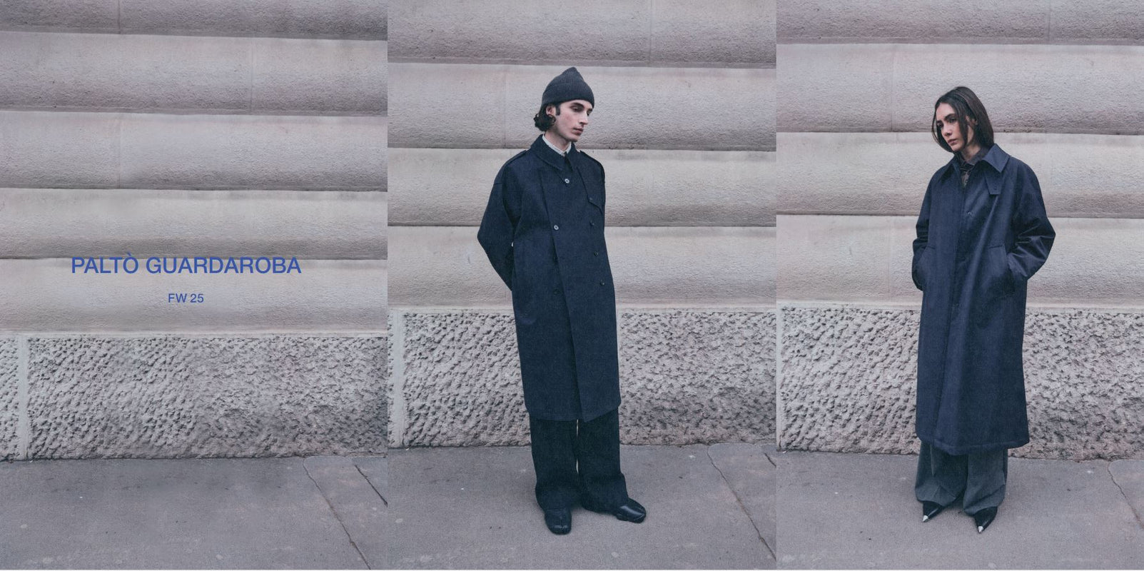 Una collezione che combina materiali iconici come la lana double_face cucita a mano, punto dopo punto con tessuti tecnici evoluti: lane accoppiate, cotoni cerati, nylon resinati. Volumi contemporanei, superfici pulite, proporzioni rigorose. Nulla è superfluo. Ogni dettaglio è pensato con intenzione. Cuciture termosaldate. Interni strutturati. Ergonomia applicata al quotidiano.